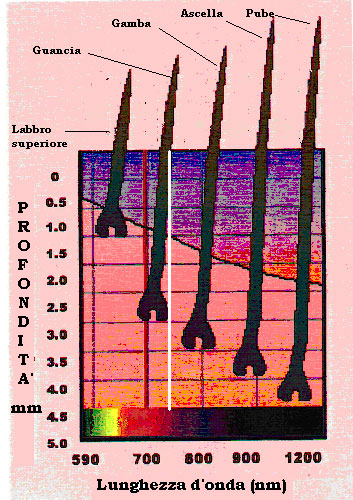 Apparecchi di Luce Pulsata sono utilizzati grazie alla fototermolisi selettiva (Anderson e Parrish, 1983) per l’epilazione. I fotoni di luce raggiungendo gli strati più profondi del follicolo pilifero, vengono assorbiti in maniera selettiva dalla melanina del pelo causando la distruzione termica del follicolo, senza danno ai tessuti circostanti. La densità di energia necessaria per coagulare un follicolo pilifero dipenderá dal colore del pelo, dal suo diametro e dalla sua profondità.